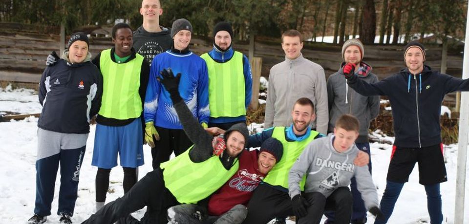 3 grudnia, w wyjątkowo śnieżne popołudnie, odbył się długo wyczekiwany mecz piłkarski. Warunki były trudne, ale bracia byli bardzo zmobilizowani i podjęli wyzwanie. Spotkanie sportowe zakończyło się zwycięstwem naszej drużyny. Mimo chłodnej aury, na boisku było gorąco. Mecz zakończył się wynikiem 15:3.