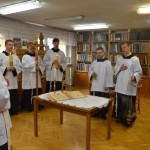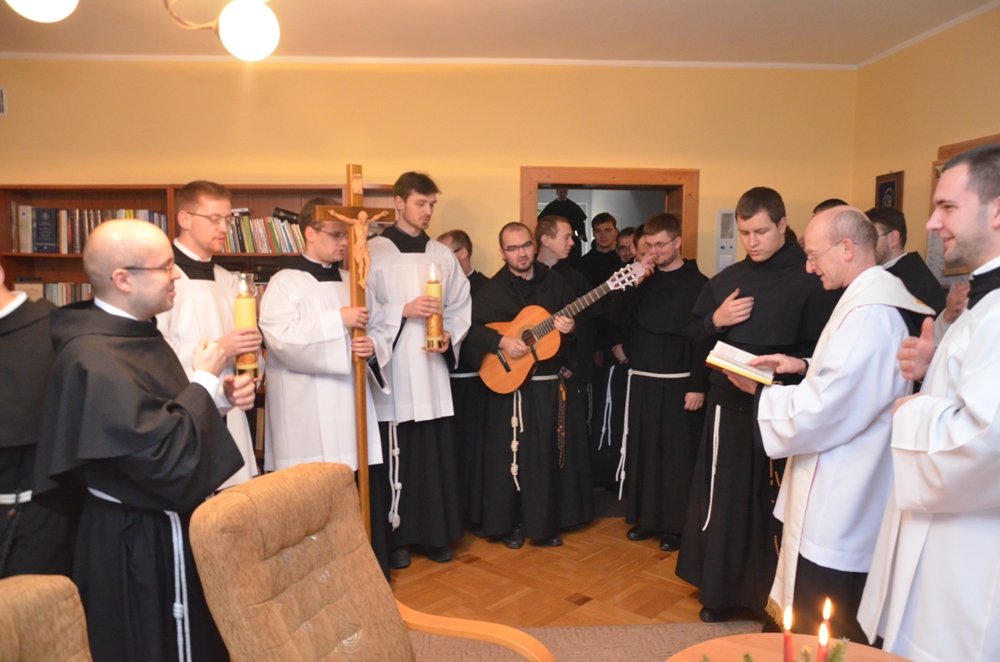 W naszym Zakonie istnieje niezatarta tradycja kolędowania po celach klasztornych w Uroczystość Objawienia Pańskiego. W tym także podtrzymaliśmy tradycję kolędując po celach i darząc się wzajemnie modlitwą i błogosławieństwem na nowy 2014 rok. Kolędę zaczęliśmy o 9.30 od celi Ojca Rektora, następnie poszliśmy do wszystkich Ojców w naszym seminarium a potem z kolei kolęda zawitała u braci. Wszyscy w seminarium przyjęli kapłana ze służbą liturgiczną i wszystkie pokoje zostały poświęcone ponadto poświęciliśmy także kuchnie, pralnie, nasze klasy i ogólnie mówiąc wszystkie pomieszczenia. Niezatarta tradycja Zakonna mówi także, o udzieleniu jakiegoś podarunku z okazji modlitwy i błogosławieństwa celi, dlatego każdy z nas przygotował prezenty tzw. fant, który był przeznaczony na zabawę wieczorną. Wśród nich były książki, słodycze, drobne upominki, obrazy, kubki czy też koszulki. Wieczorem zaczęła się zabawa było nią tzw. AMBO czyli gra o dość prostych regułach w której liczy się szczęście i szybkość, każdy miał okazję wygrać paczkę z kolędy.
