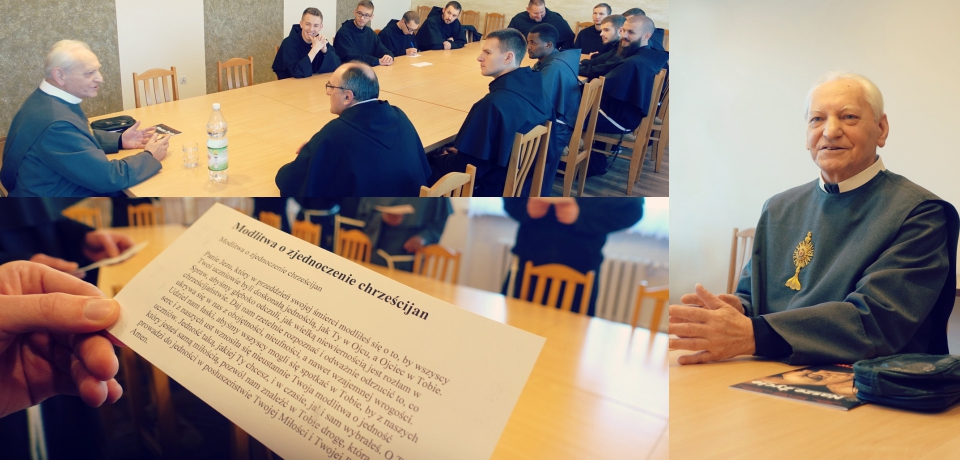 W sobotnie przedpołudnie odbyło się w naszym seminarium kolejne spotkanie Koła ekumenicznego. Okazją była wizyta przedstawiciela Starokatolickiego Kościoła Mariawitów, który przyjął zaproszenie braci. Kapłan Mieczysław Maria Kazimierz Kaczmarski posługuje w mariawickiej parafii pw. św. Franciszka z Asyżu w Łodzi. Gość krótko przybliżył historię mariawityzmu i opowiedział historię swojego powołania. Przedstawił główne cechy mariawityzmu do których należą szczególna cześć dla Najświętszego Sakramentu, Matki Bożej oraz szerzenie orędzia o Miłosierdziu Bożym. Jednocześnie poruszono kwestie przyczyn odłączenia od Kościoła Rzymskokatolickiego w przeszłości i perspektyw na pełną jedność w przyszłości. I właśnie modlitwą o jedność chrześcijan spotkanie zostało zakończone.