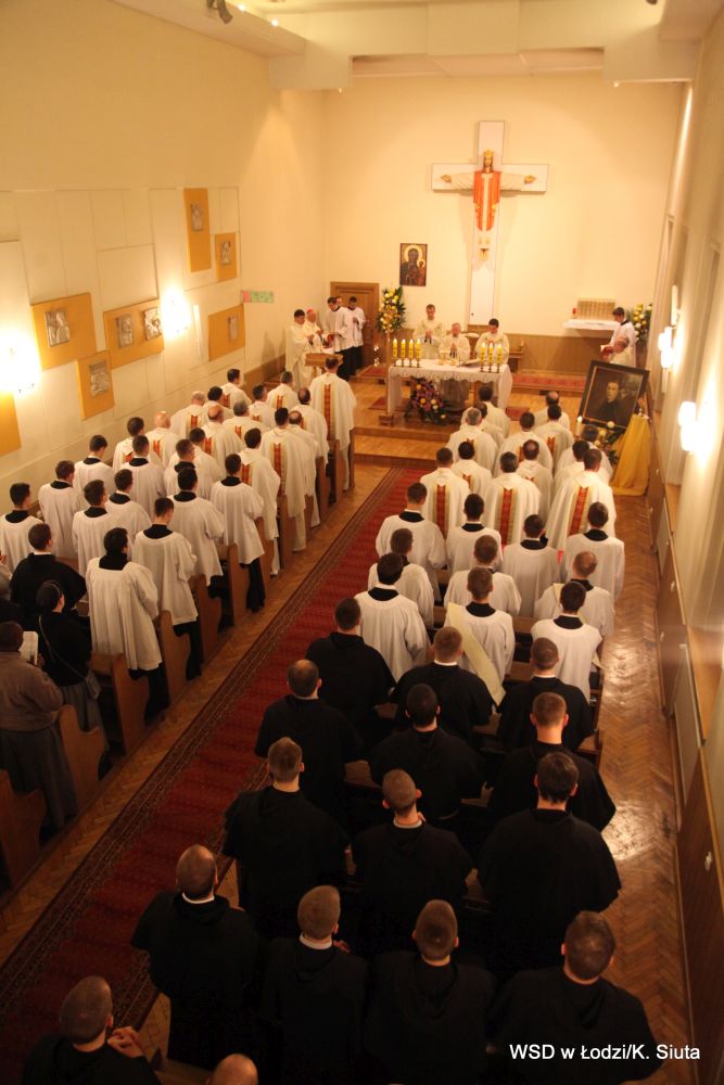 Wczoraj, tj. 13.11.br., nasze Seminarium udało się w odwiedziny do Seminarium Diecezjalnego w Łodzi. Spotkanie to wiązało się z odpustem św. Stanisława Kostki, który jest patronem tamtejszego Seminarium. Mszy św. przewodniczył abp Marek Jędraszewski, który też wygłosił słowo Boże. Podkreślał w nim szczególnie stałość i zapał w pełnieniu woli Bożej u jezuickiego świętego. Eucharystie koncelebrowali ojcowie z naszego WSD; obecny był również abp Janusz Bolonek. Po Eucharystii odbyła się agapa w seminaryjnym refektarzu.