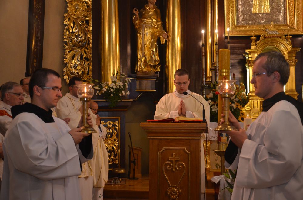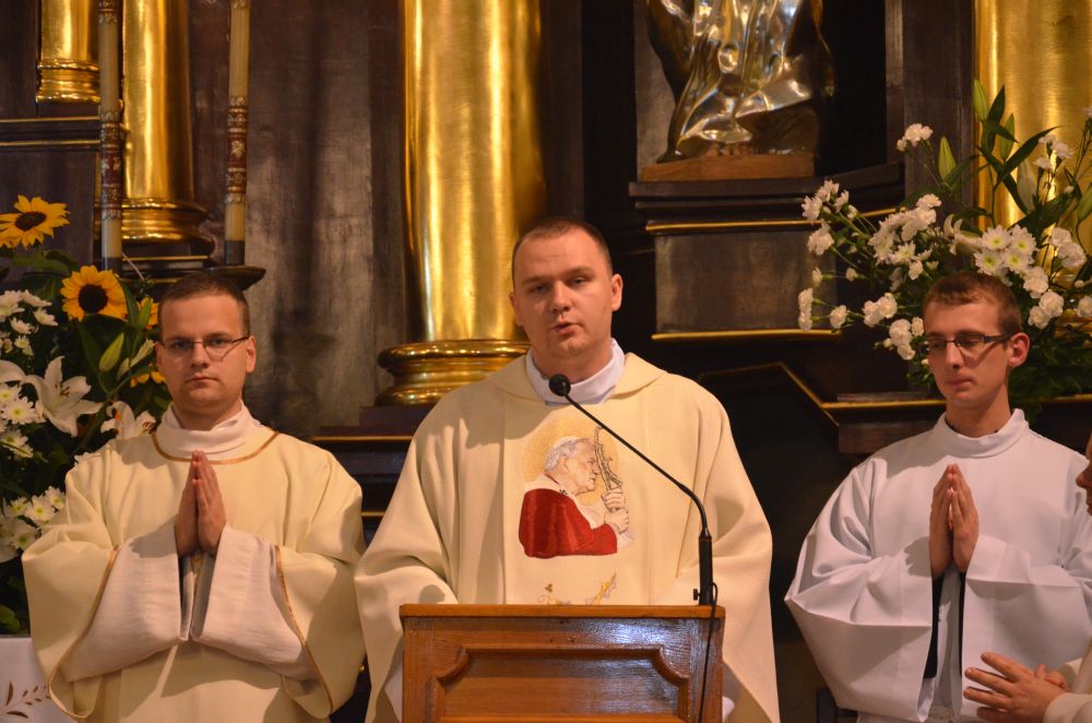 W miniony poniedziałek, tj. 2 czerwca, w dwa dni po otrzymaniu święceń kapłańskich, nasi Bracia odprawili w Sanktuarium św. Antoniego swoją Mszę prymicyjną. Wspólne świętowanie zbiegło się także z rocznicą 40 lecia święceń kapłańskich o. Jana Muchy – wykładowcy Historii Kościoła. Uroczysta Msza św. rozpoczęła się o 18:00. Głównym celebransem był o. Piotr Socha – neoprezbiter, w koncelebrze uczestniczyli wszyscy kapłani z seminarium i część z klasztoru łagiewnickiego. W kazaniu, które wygłosił o. Ireneusz Klimczyk, podkreślił ogromną wagę i znaczenie sakramentu święceń kapłańskich oraz zaznaczył jak kruchymi naczyniami są kapłani obdarzeni tym sakramentem. Po krótce przedstawił życie o. Jana i posługi jakie pełnił dla parafii i klasztoru w Łagiewnikach, bowiem o. Jan mieszka tu aż 34 lata!