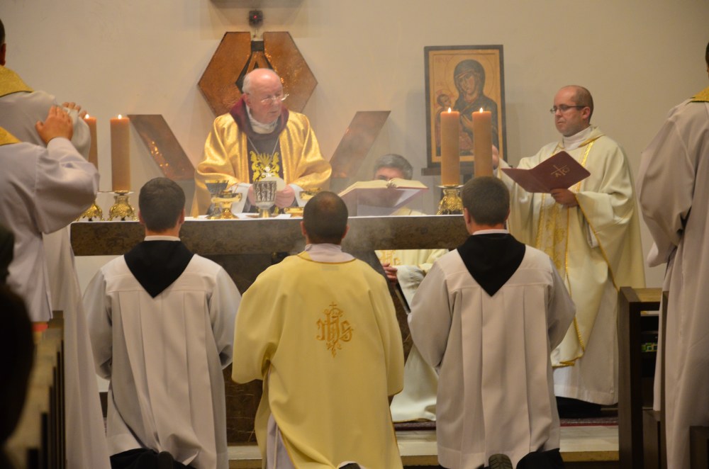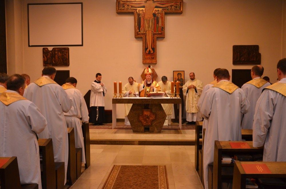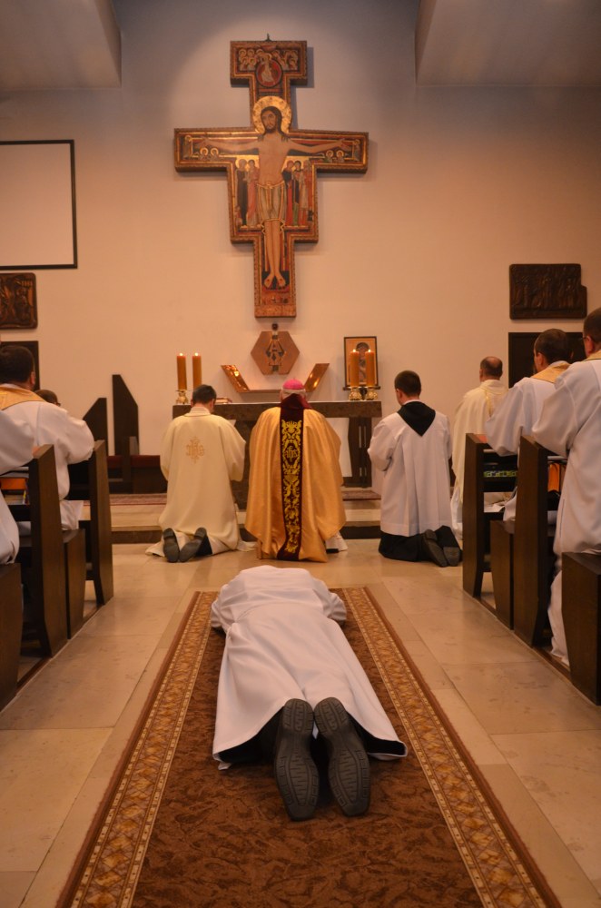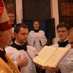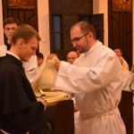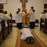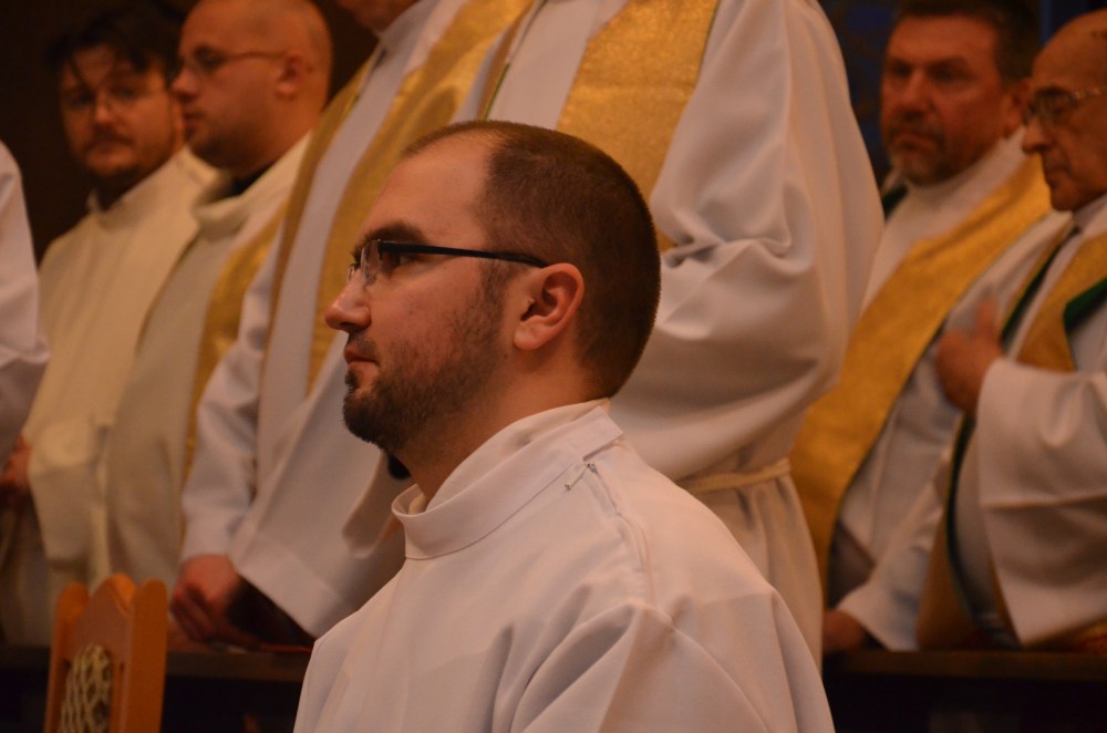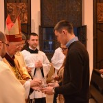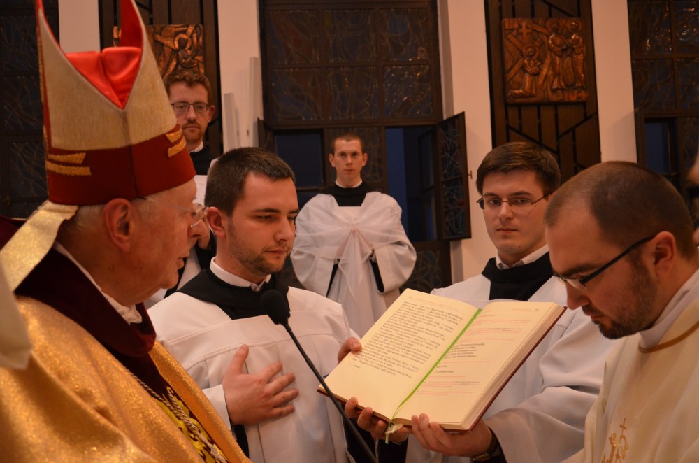 W dniu dzisiejszym, 10 III br., w naszym Seminarium miała miejsce podniosła uroczystość: br. Eugeniusz Hołub z rąk ks. abpa seniora Władysława Ziółka przyjął święcenia diakonatu. Zgromadziła ona przybyłą z Iwieńca na Białorusi, skąd pochodzi br. Eugeniusz, rodzinę, bliskich przyjaciół, a także współbraci z Polski i Białorusi. Wcześniej, podczas południowej Modlitwy z Liturgii Godzin, br. Eugeniusz złożył wyznanie wiary, które w imieniu Ojca Prowincjała przyjął Ojciec Rektor.