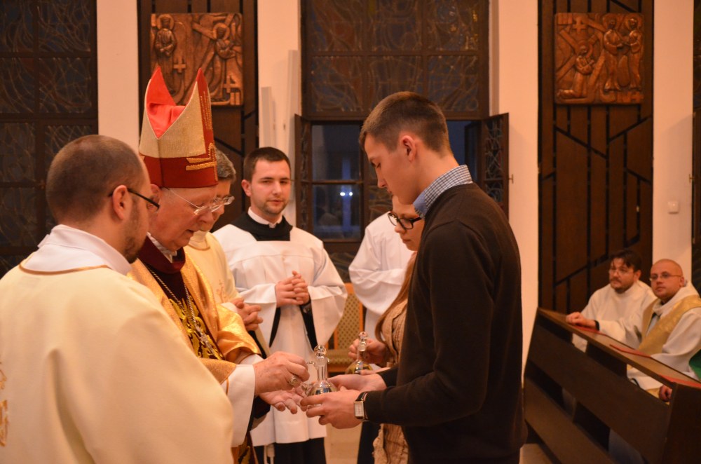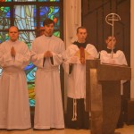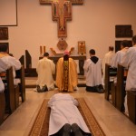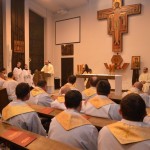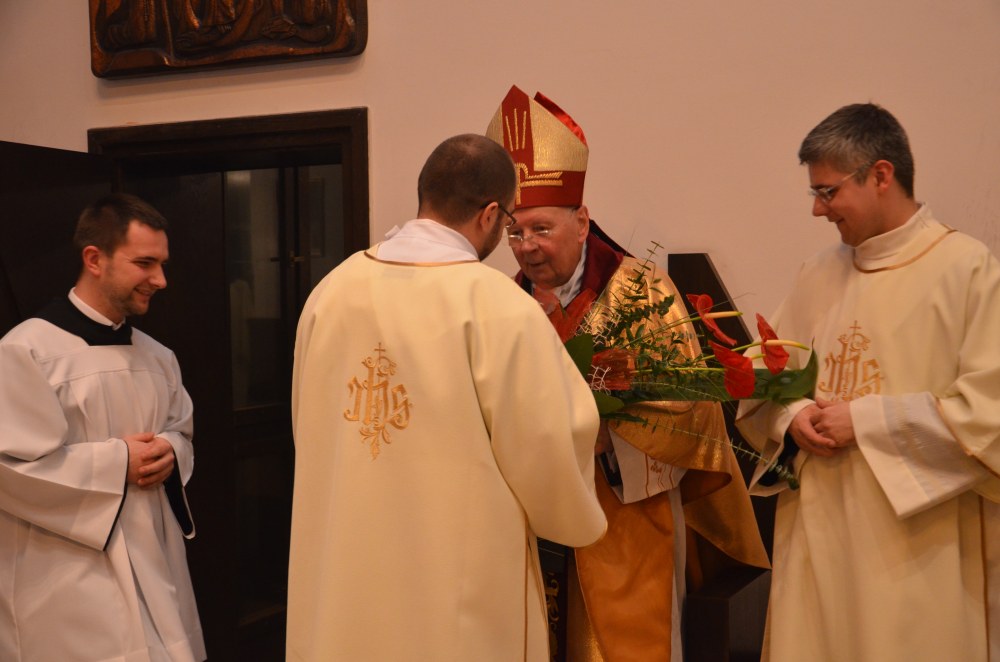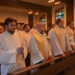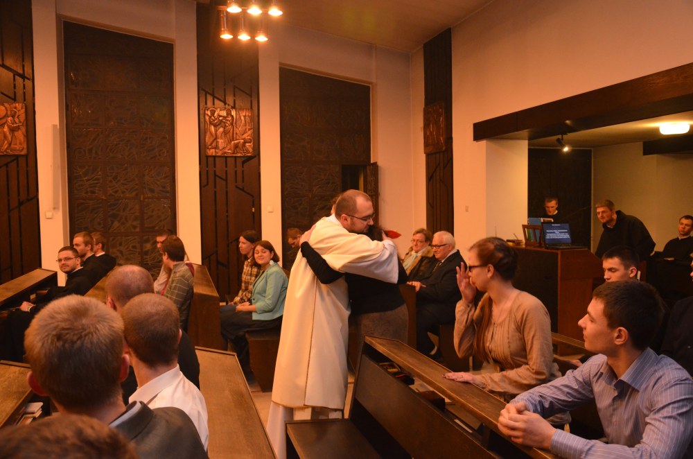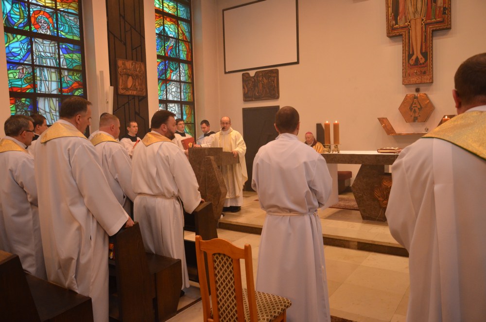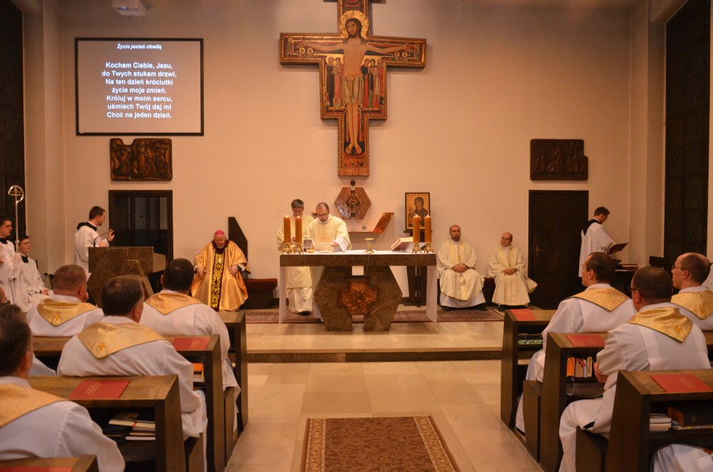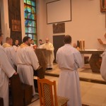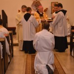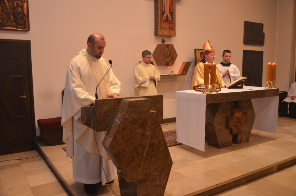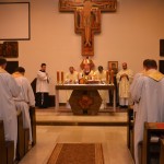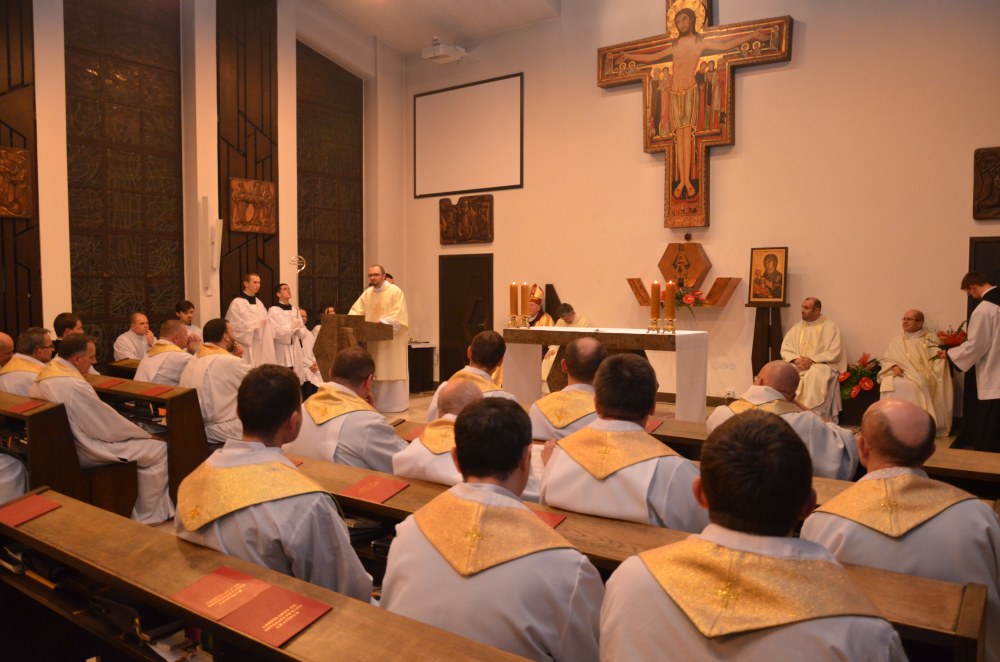 Msza święta z obrzędem święceń rozpoczęła się w naszej seminaryjnej kaplicy o godz. 17.00. Podczas wygłoszonej homilii Ks. Arcybiskup nawiązał do czytań liturgicznych, w których usłyszeliśmy słowa z Księgi Kapłańskiej: „Świętymi bądźcie, bo Ja jestem święty”. Komentując je, Arcybiskup powiedział, że nie mamy porównywać się z żadnym człowiekiem, lecz punktem odniesienia ma być dla nas Bóg. Z pewnością naśladowanie Stwórcy przerasta siły człowieka, jednak dla Boga nie ma nic nie możliwego. Zwłaszcza przez przykazania mamy stawać się świętymi. „I tu dostrzegamy wspaniałą definicję diakona, który jest wezwany do bycia świętym przez naśladowanie Boga w miłości” – podsumował Ksiądz Arcybiskup. Podczas podziękowań nowo-wyświęcony diakon dziękując każdemu za przybycie nie krył wzruszenia i radości. W nawiązaniu do homilii, „świętości życia” życzył o. dk. Eugeniuszowi ojciec Prowincjał Wiesław Pyzio. Po zakończonej Eucharystii wszyscy zgromadzili się w refektarzu na wspólnej kolacji.