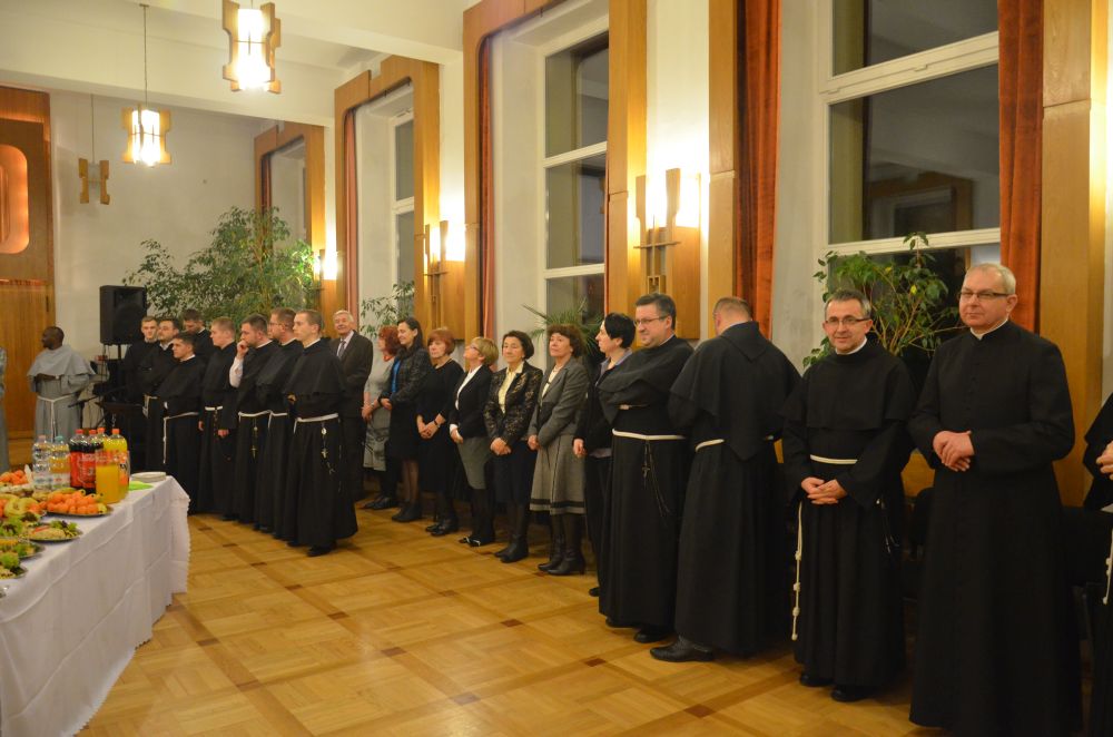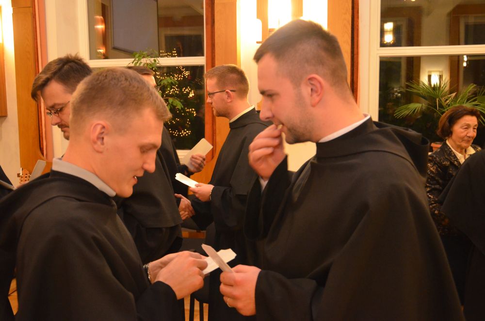 Dzisiejszego wieczoru, 19 grudnia, miało miejsce w naszym seminarium spotkanie opłatkowe. Rozpoczęło się ono o godz. 17.30. Przybyłych gości, wykładowców, pracowników i dobrodziejów Seminarium przywitał o. rektor Piotr Matuszak. Wśród gości byli ojcowie prowincjałowie: Jan Maciejowski z Gdańska i Wiesław Pyzio z Warszawy. Obecny był również ks. Jarosław Pater, który reprezentował nieobecnego ks. abpa Marka Jędraszewskiego. Po życzeniach od o. rektora, oo. prowincjałów i ks. Jarosława, miały miejsce życzenia indywidualne. Także dla nas, mieszkańców seminarium była to okazja do złożenia sobie nawzajem życzeń, gdyż 20 grudnia bracia rozpoczynają praktyki. W seminarium pozostanie jedynie kurs I, zaś bracia z kursu IV wyjadą na święta do domu.