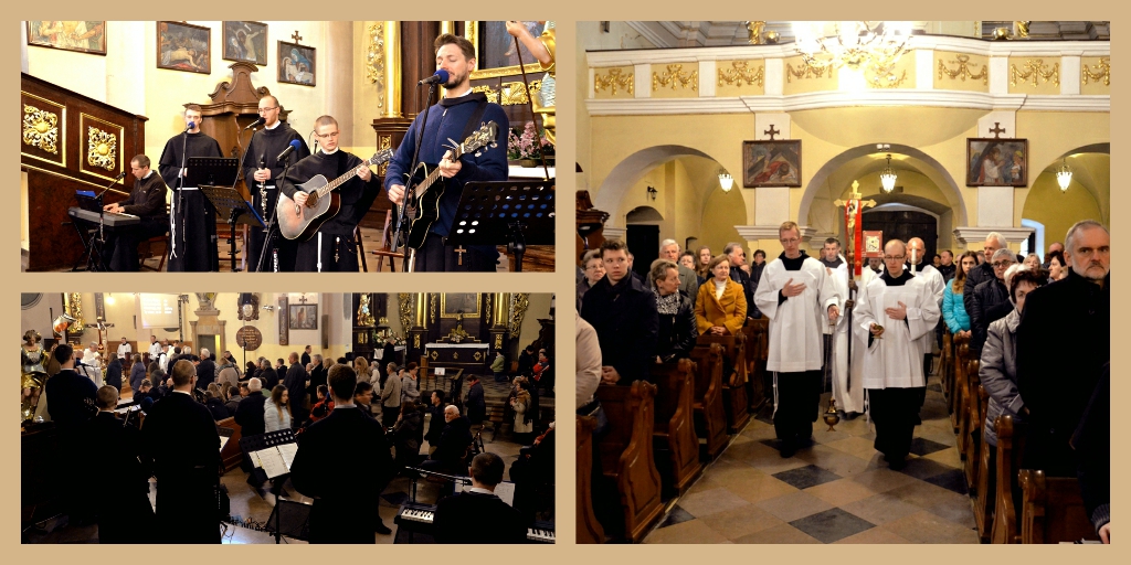 Podczas niedzieli, w minionym już długim weekendzie, bracia z zespołu zagościli w naszym parafialnym kościele w Łagiewnikach.Sanktuarium wypełniło się ich śpiewem i muzyką, przez którą chcieli pomóc ludziom w głębszym przeżyciu mszy świętej. Podczas mszy konwentualnej o godzinie 8, jak zwykle bracia przygotowali uroczystą asystę liturgiczną. Tego dnia towarzyszył nam również o. Stanisław z Miedniewic wraz z młodzieżą z tamtejszej parafii, którzy w naszym seminarium przeżywali od soboty swój dzień skupienia przed przyjęciem sakramentu bierzmowania.