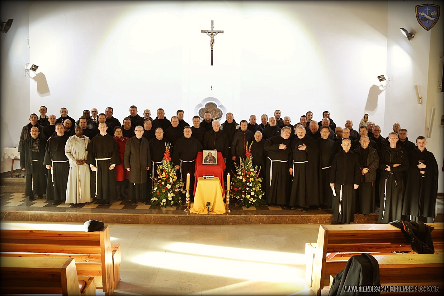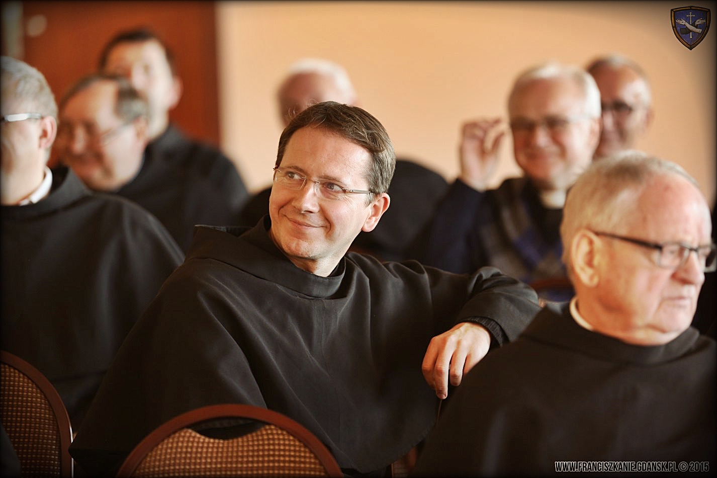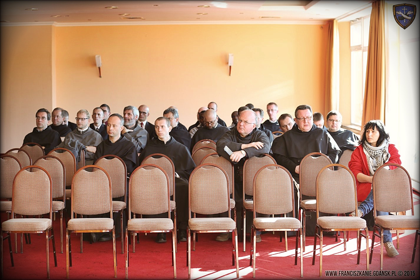 Zanim zgromadziliśmy się w kościele, do hotelu Lidia zjeżdżali bracia pracujący w Prowincji, jak również z zagranicy, m. in. z Niemiec, Litwy, Kazachstanu i Stanów Zjednoczonych. Po czasie na kawę i ciasto zebraliśmy się w sali konferencyjnej, aby rozpocząć świętowanie od modlitwy brewiarzowej i wykładu nt. obecności Franciszkanów na Ziemiach Północnych. Temat podyktowany był obchodzonym w tym roku jubileuszem 70-lecia pracy naszych braci na północy Polski.