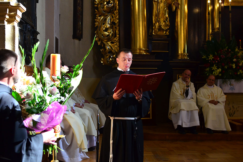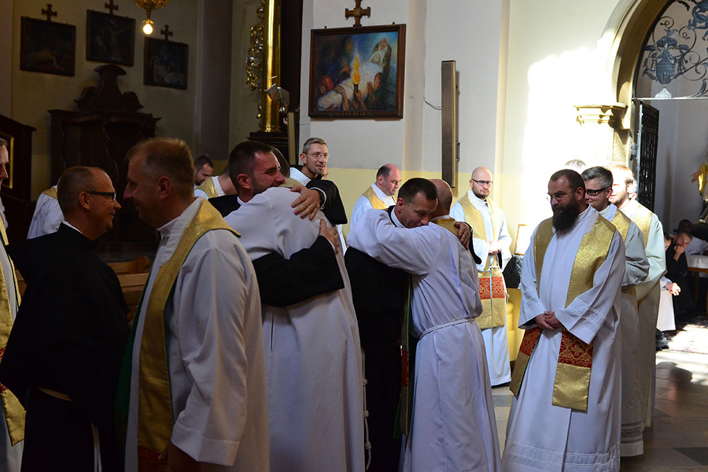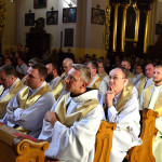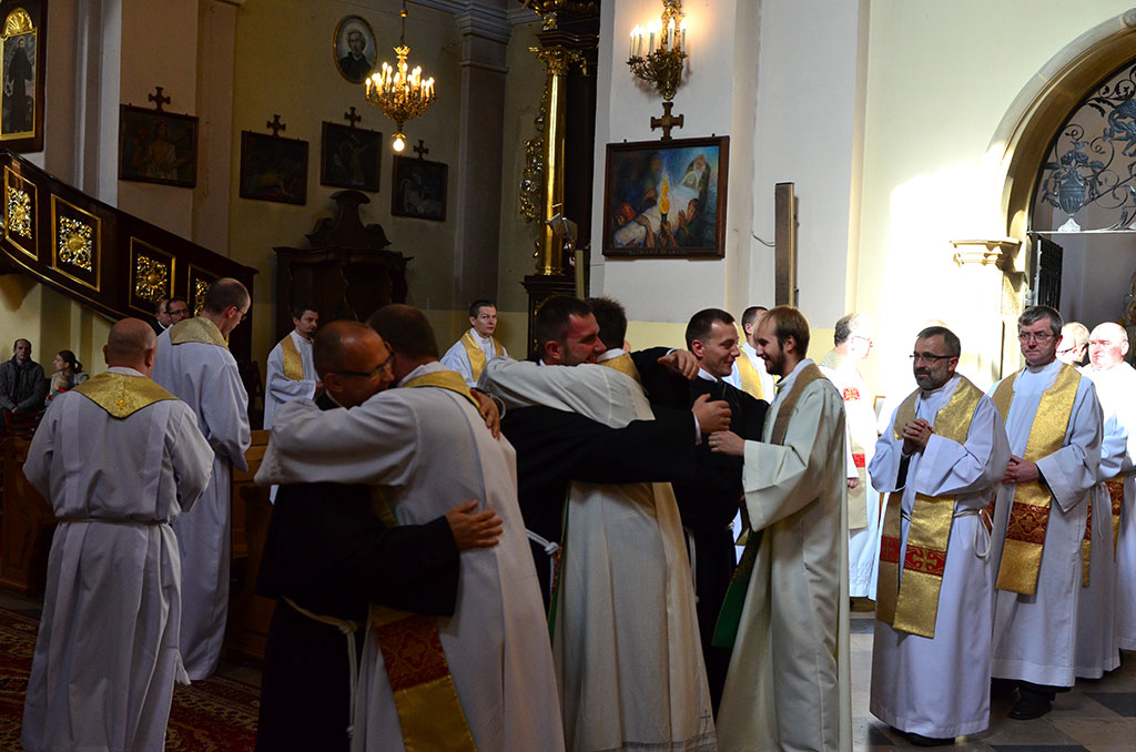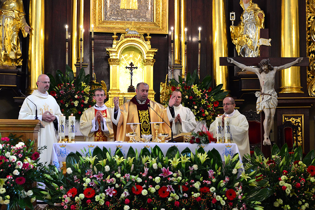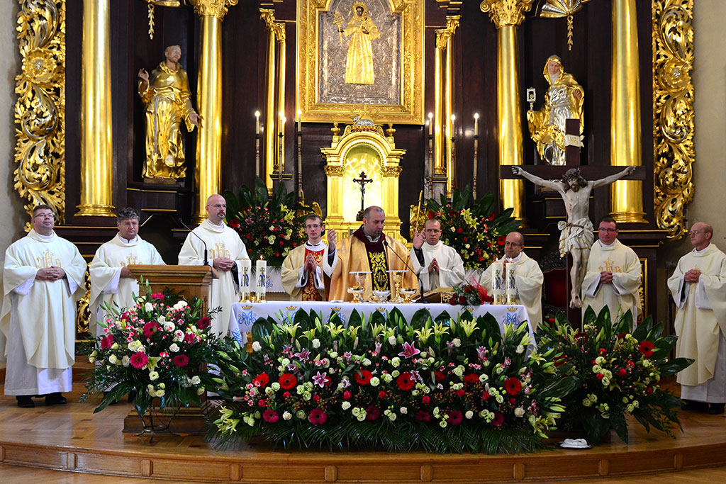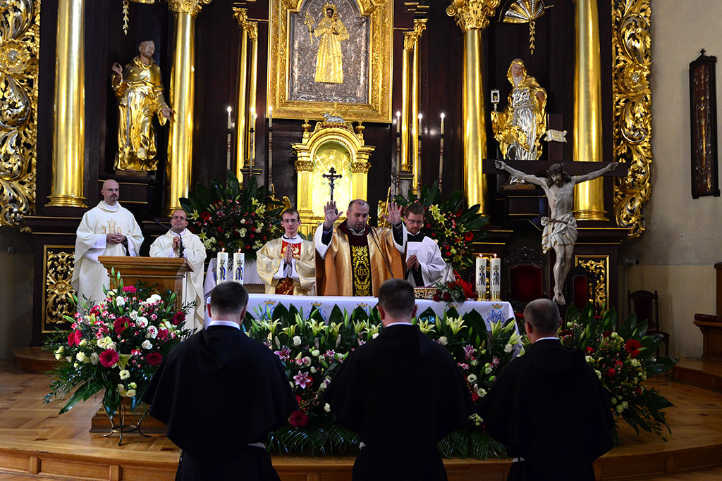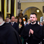 Uroczysta Msza św. miała miejsce w łagiewnickim sanktuarium św. Antoniego o godz. 11.00. Przewodniczył jej i śluby braci przyjął o. prowincjał Wiesław Pyzio z Warszawy. On też skierował do nas (a zwłaszcza do neoprofesów) słowo Boże. W przeddzień uroczystości Świętego Naszego Ojca Franciszka nawiązał do jego osoby. Życzył braciom składającym śluby, by tak jak Biedaczyna z Asyżu pokochali Boga, by się Nim zachwycili. Po zakończonej Mszy św. zaproszeni goście udali się do naszego seminarium na uroczysty obiad.