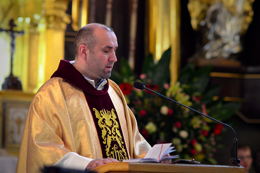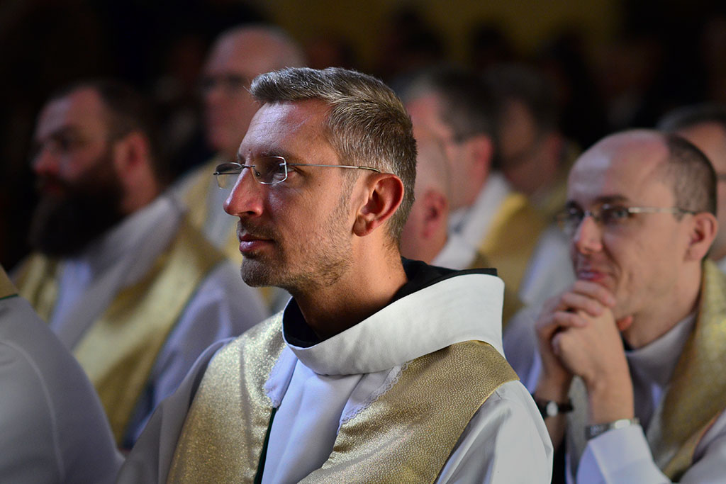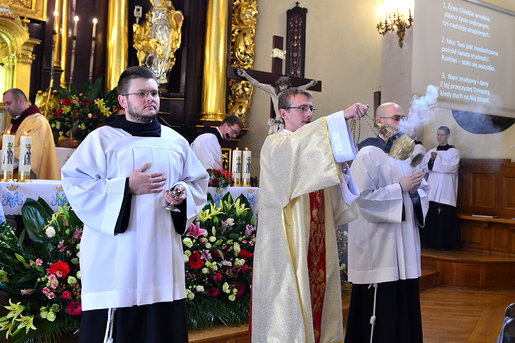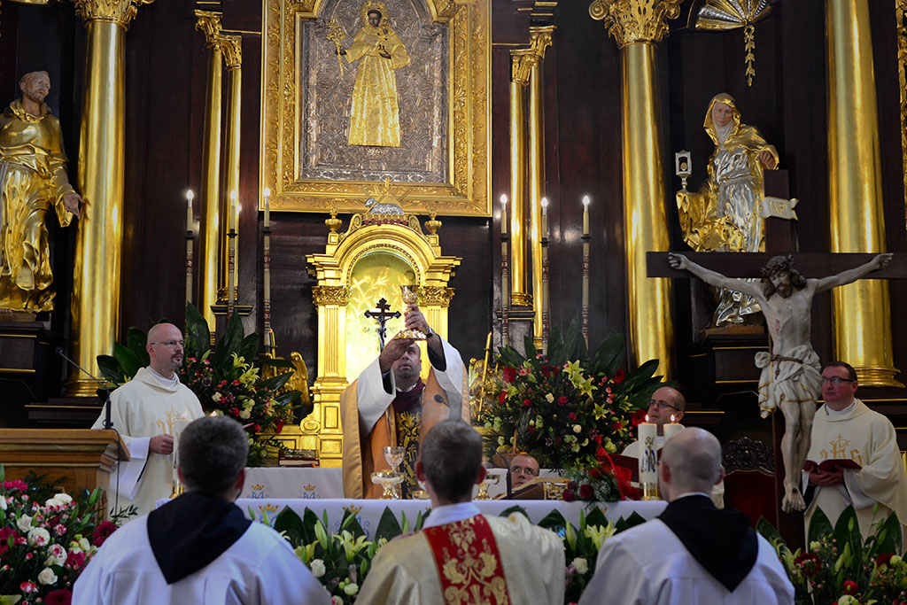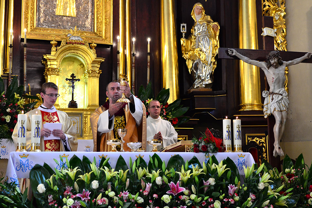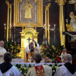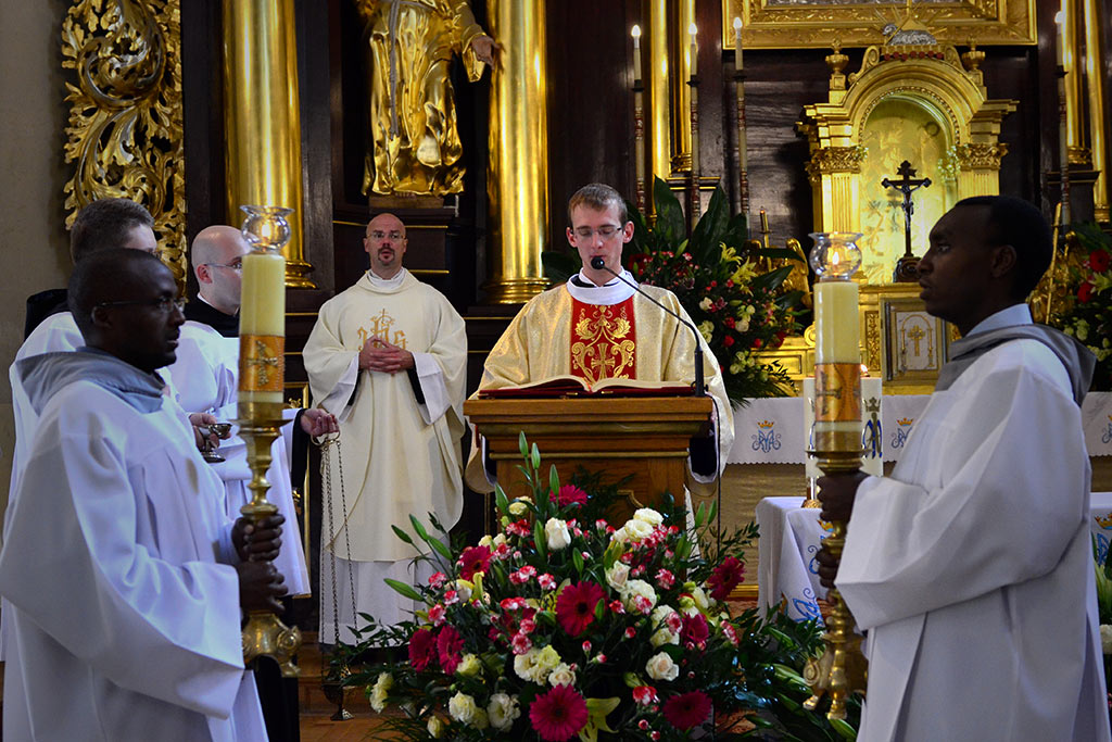 Uroczysta Msza św. miała miejsce w łagiewnickim sanktuarium św. Antoniego o godz. 11.00. Przewodniczył jej i śluby braci przyjął o. prowincjał Wiesław Pyzio z Warszawy. On też skierował do nas (a zwłaszcza do neoprofesów) słowo Boże. W przeddzień uroczystości Świętego Naszego Ojca Franciszka nawiązał do jego osoby. Życzył braciom składającym śluby, by tak jak Biedaczyna z Asyżu pokochali Boga, by się Nim zachwycili. Po zakończonej Mszy św. zaproszeni goście udali się do naszego seminarium na uroczysty obiad.