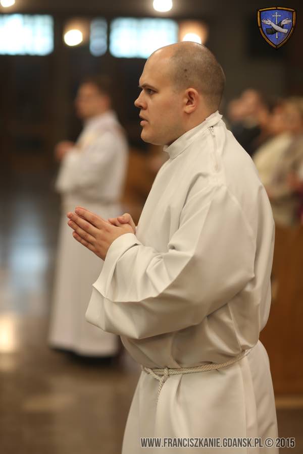 W sobotę, 23 maja br., w Gdyni sakrament święceń przyjął o. Maciej Talewski (prezbiterat) i br. Kamil Średnicki (diakonat). Sakramentu udzielił J. Eks. ks. bp Wiesław Śmigiel, który także wygłosił homilię. Święcenia zostały udzielone braciom w naszej franciszkańskiej parafii pw. św. Antoniego z Padwy. Na tę uroczystość pojechała duża delegacja z naszego Seminarium, z o. rektorem na czele. Bracia przygotowali asystę podczas Mszy św. Obecny był również o. prowincjał Jan Maciejowski. Ksiądz biskup w homilii nawiązując do franciszkańskiego pozdrowienia „Pokój i Dobro!” zaznaczył, że pokój mogą przekazywać ci, którzy mają go w sercu. Życzył, by właśnie serca pełne pokoju nowo wyświęceni zawsze mieli.