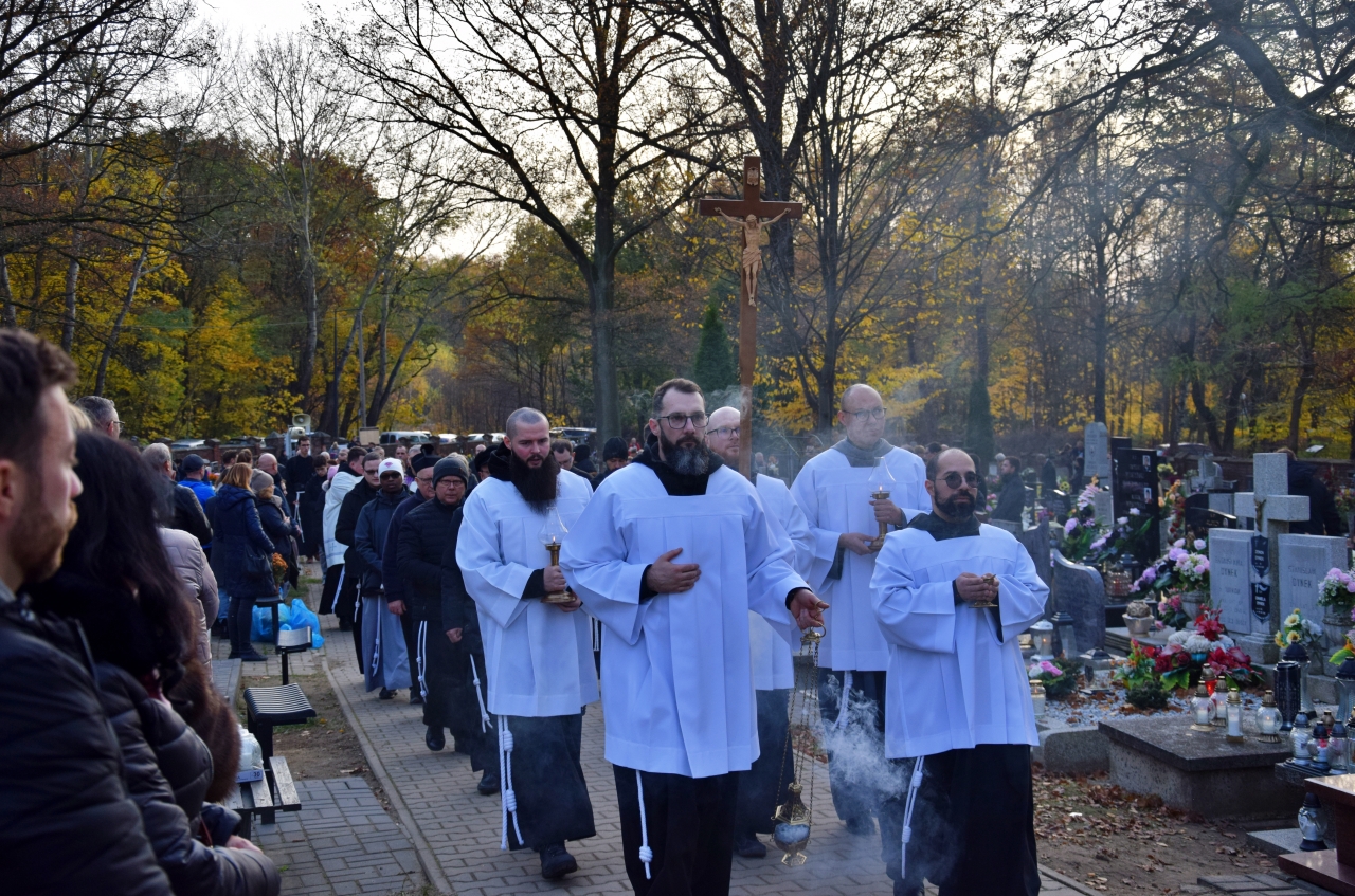 1 listopada na cmentarzu parafialnym odbyła się również uroczysta Msza Święta, której przewodniczył i wygłosił homilię o. Jan Olszewski – sekretarz prowincji Matki Bożej Niepokalanej. Po Mszy, ścieżkami cmentarza, przeszła prowadzona przez nas procesja żałobna, którą poprowadził o. Marek Sykuła – gwardian.