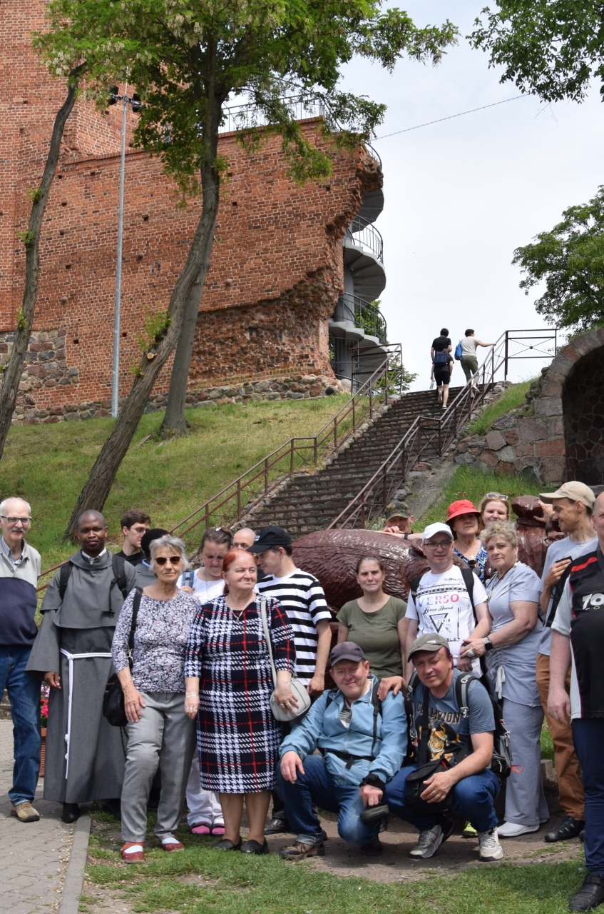 Pielgrzymka rozpoczęła się od wizyty w historycznym miejscu – Kruszwicy, gdzie odwiedziliśmy słynną Mysią Wieżę, miejsce bogate w legendy i symbolikę związaną z historią Polski. Zamek, który został wzniesiony przez króla Kazimierza Wielkiego w XIV wieku, niestety został zniszczony, a dziś pozostała jedynie ośmiokątna wieża, znana właśnie jako „Mysia Wieża”. Weszliśmy na szczyt wieży, skąd my i nasi podopieczni mogliśmy podziwiać piękne widoki. Wizyta ta stanowiła nie tylko wzbogacenie kulturowe i historyczne, ale również okazję do refleksji nad pięknem stworzenia.