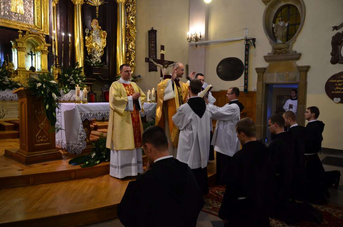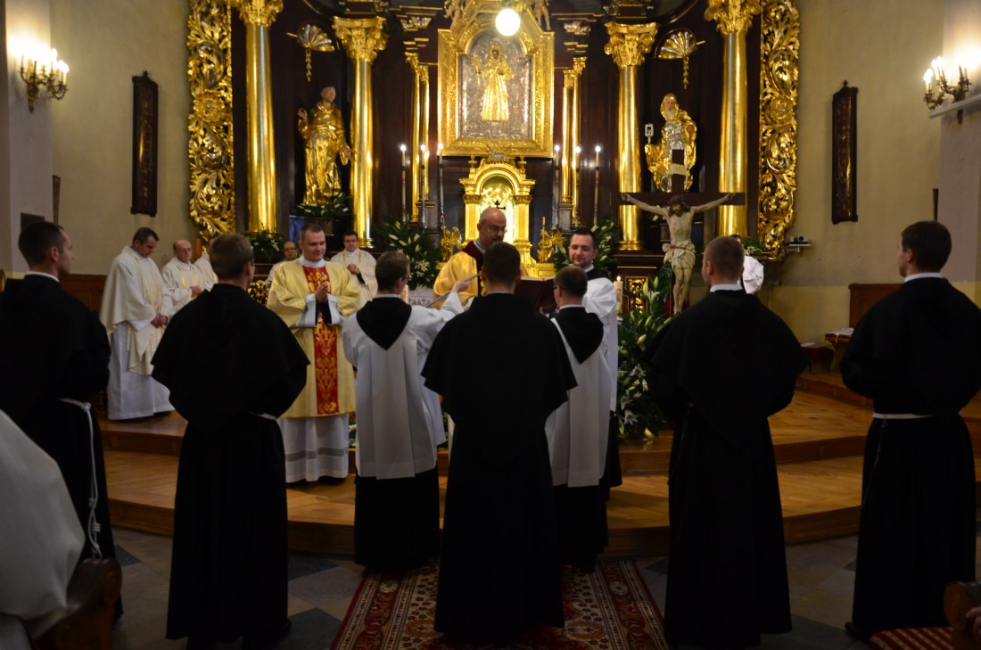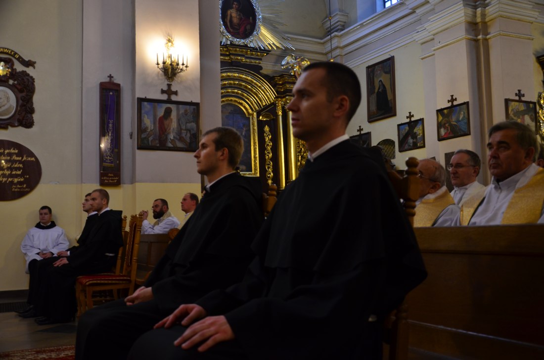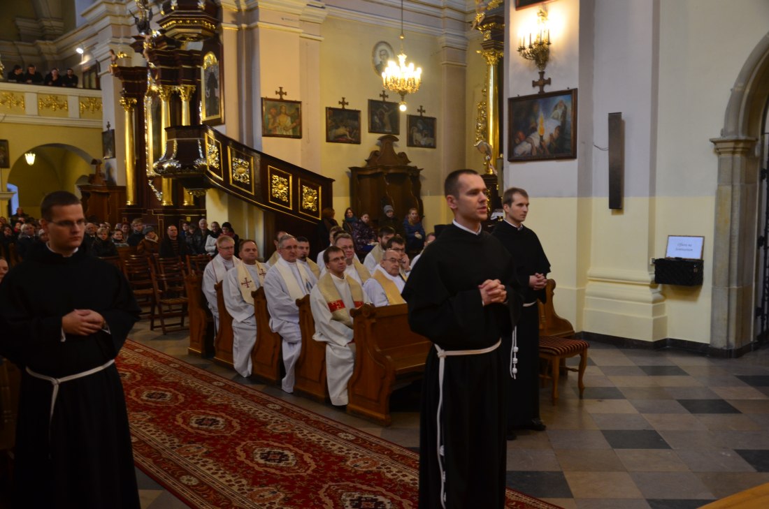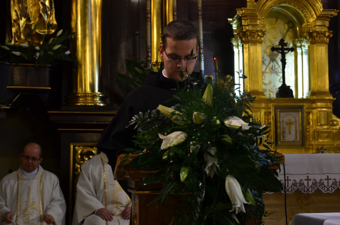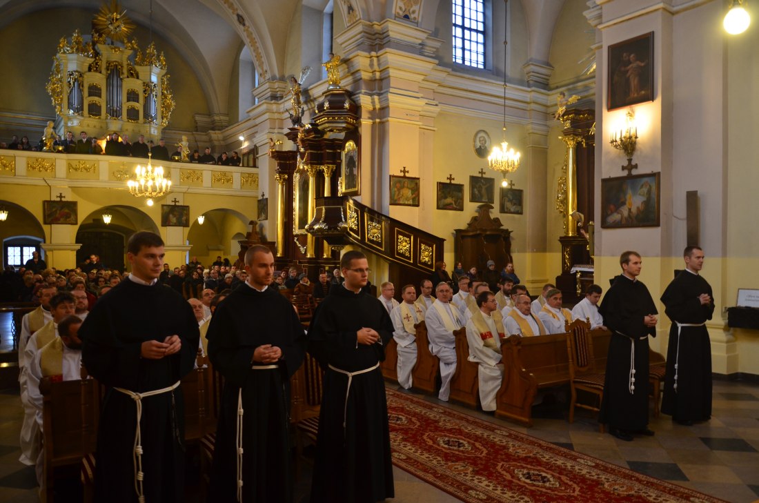 Msza św. o godz. 11:00 w sanktuarium św. Antoniego zgromadziła wielu gości. Przybyli bracia z Zakony, przybyły rodziny braci. Eucharystii przewodniczył o. Piotr Szczepański – on również przyjął śluby braci z prowincji warszawskiej. Natomiast słowo Boże skierował do nas o. Jan Maciejowski – prowincjał gdański. Na Jego ręce swoje śluby złożył br. Maciej. Ojciec Jan w homilii przybliżył nam rzeczywistość rad ewangelicznych. Neoprofesom życzył zaangażowania w życie zakonne. Życzenia złożył również Ojciec Wikariusz, który dziękował zwłaszcza rodzicom, za ich trud wychowania synów, a nadto zwrócił uwagę na ich ofiarę, jaką czynią oddając dziecko Panu Bogu. Po zakończonej Mszy św. wszyscy zaproszeni goście udali się do seminarium, gdzie przygotowany był dla nich poczęstunek.