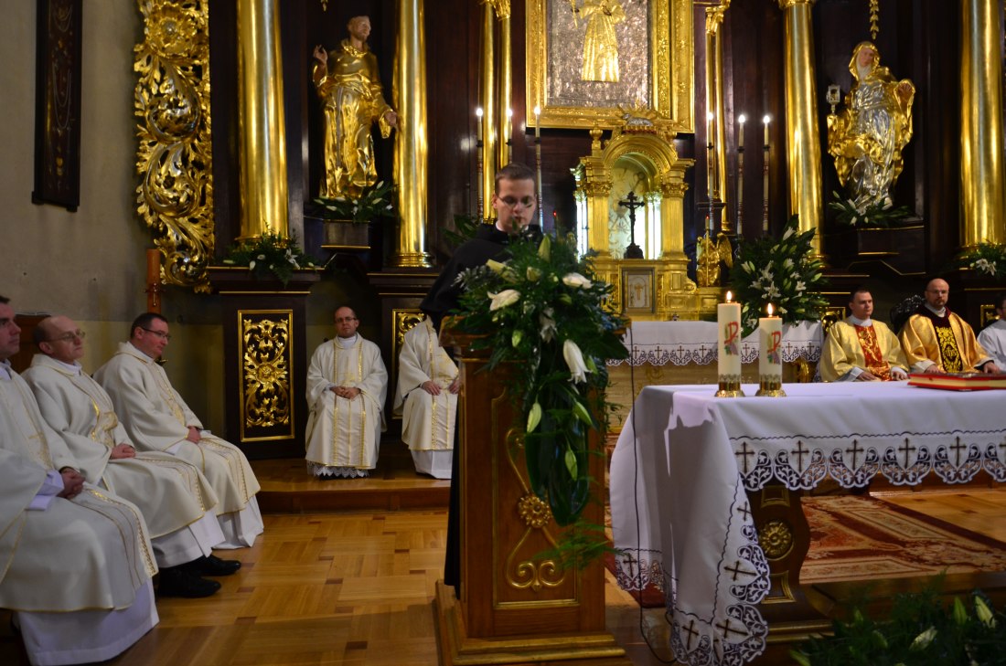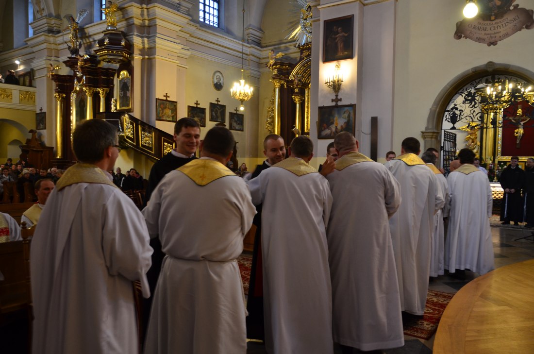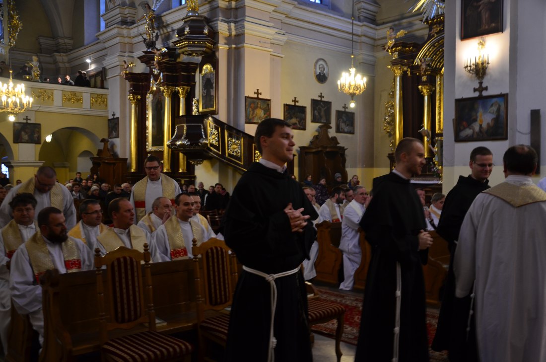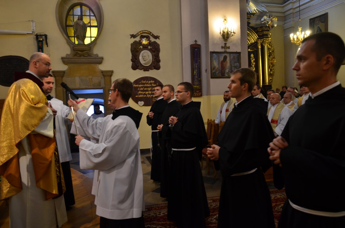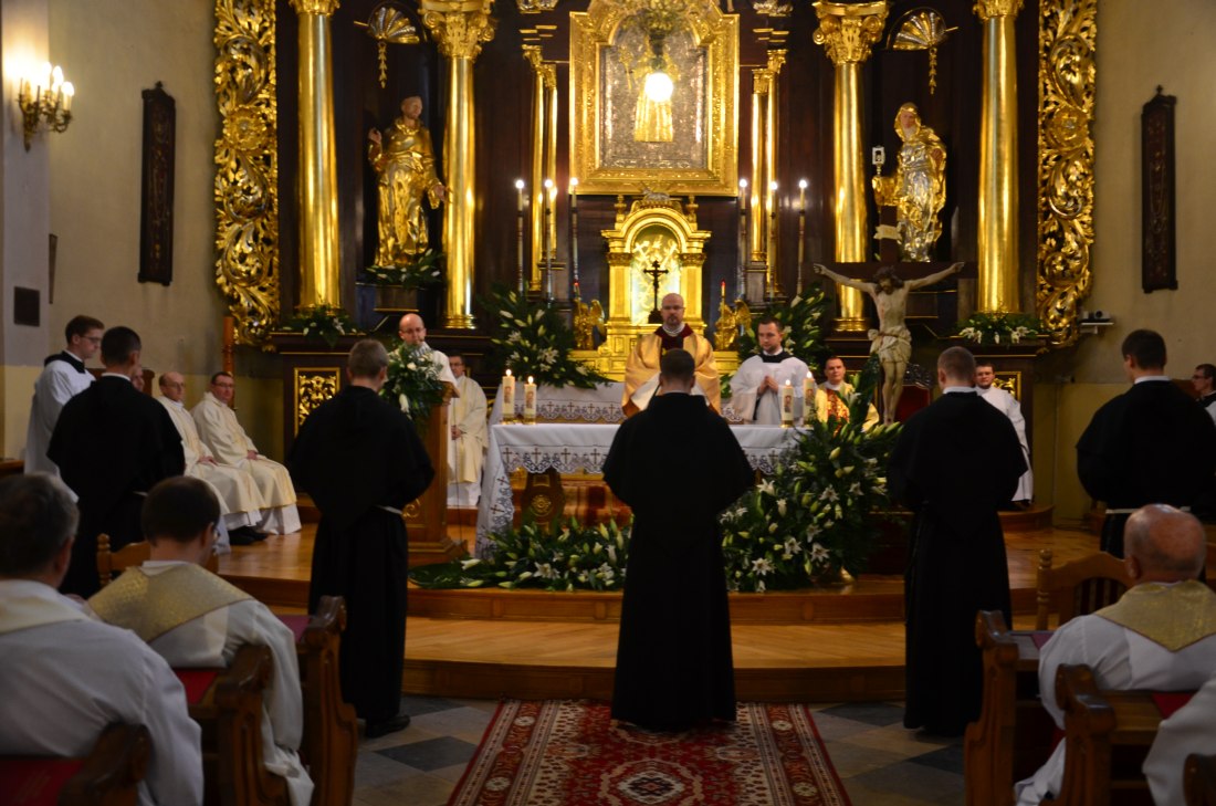 Msza św. o godz. 11:00 w sanktuarium św. Antoniego zgromadziła wielu gości. Przybyli bracia z Zakony, przybyły rodziny braci. Eucharystii przewodniczył o. Piotr Szczepański – on również przyjął śluby braci z prowincji warszawskiej. Natomiast słowo Boże skierował do nas o. Jan Maciejowski – prowincjał gdański. Na Jego ręce swoje śluby złożył br. Maciej. Ojciec Jan w homilii przybliżył nam rzeczywistość rad ewangelicznych. Neoprofesom życzył zaangażowania w życie zakonne. Życzenia złożył również Ojciec Wikariusz, który dziękował zwłaszcza rodzicom, za ich trud wychowania synów, a nadto zwrócił uwagę na ich ofiarę, jaką czynią oddając dziecko Panu Bogu. Po zakończonej Mszy św. wszyscy zaproszeni goście udali się do seminarium, gdzie przygotowany był dla nich poczęstunek.
