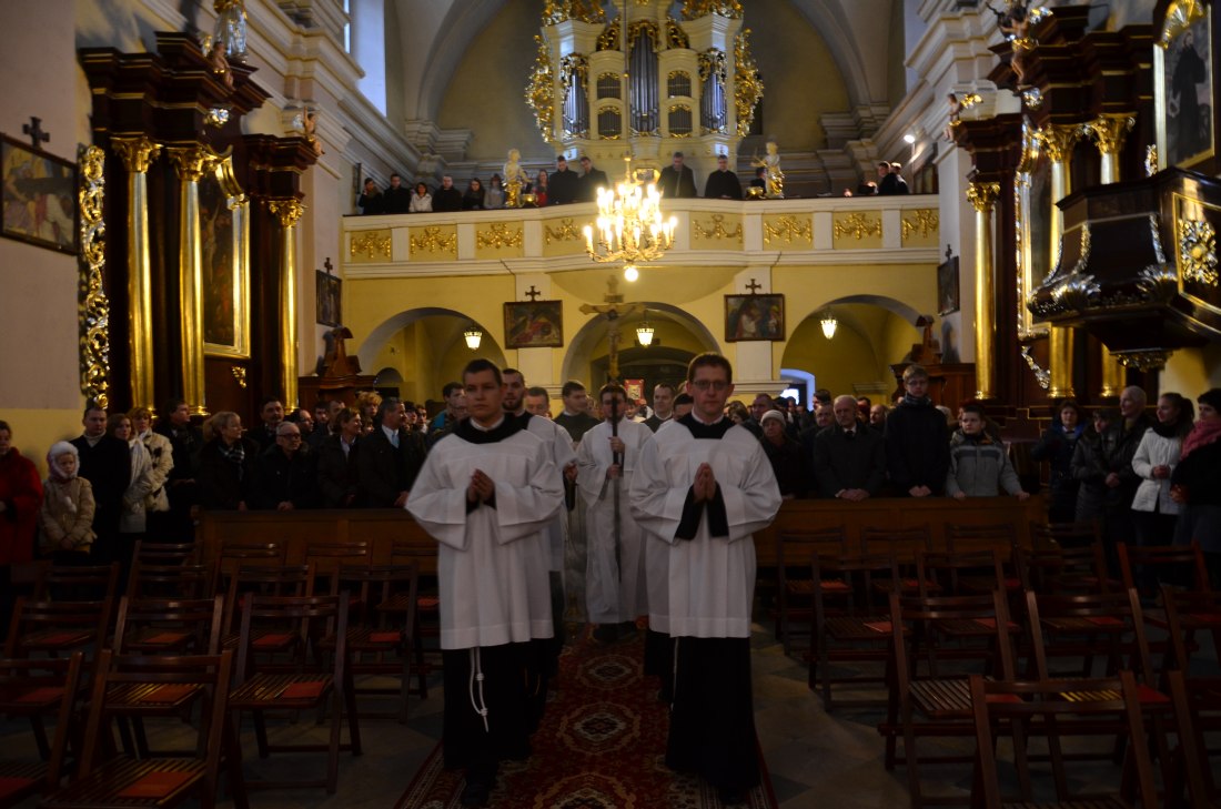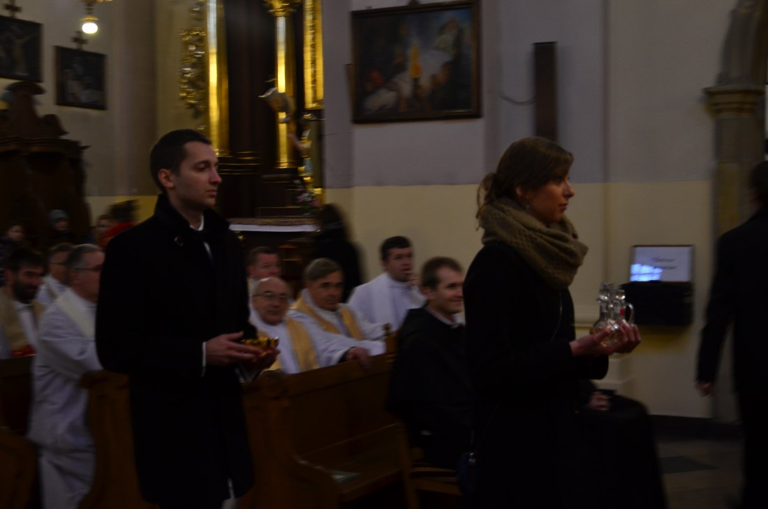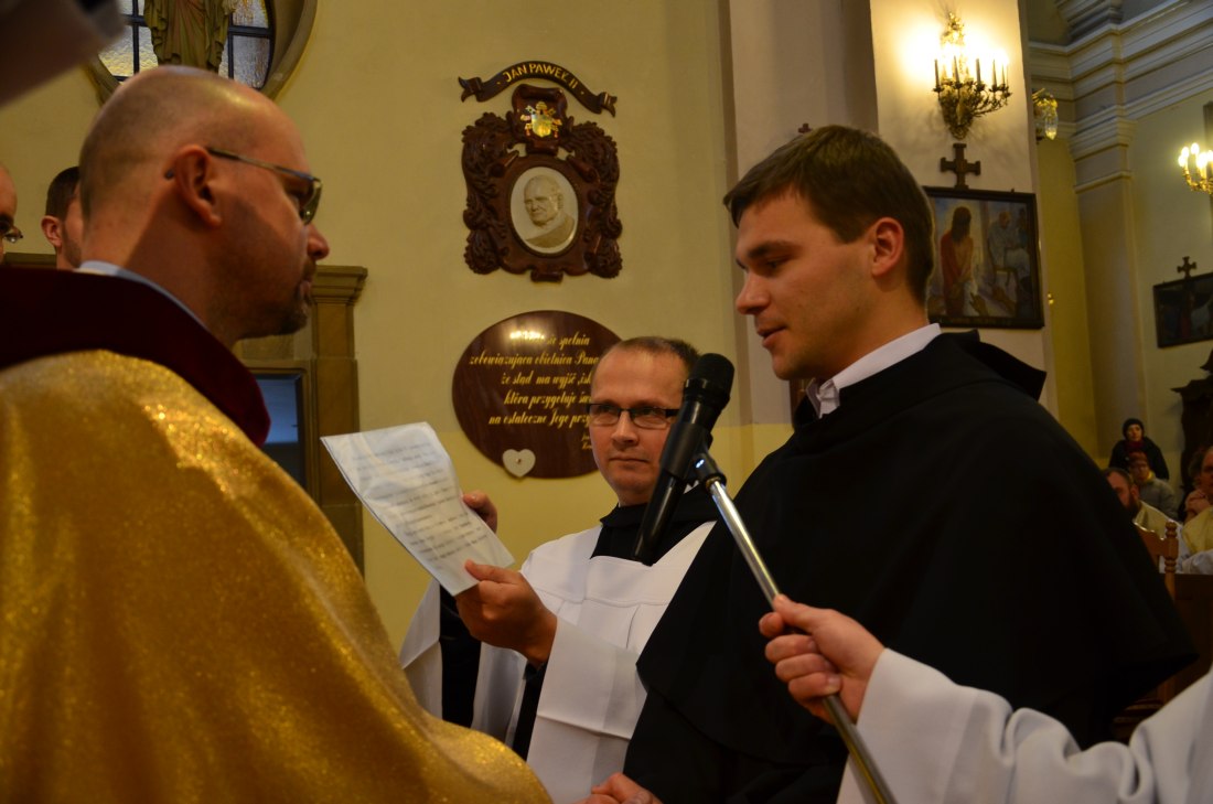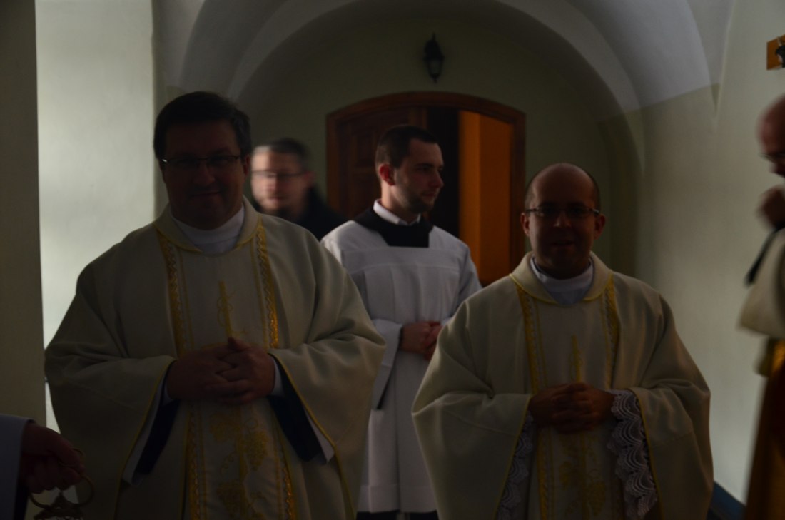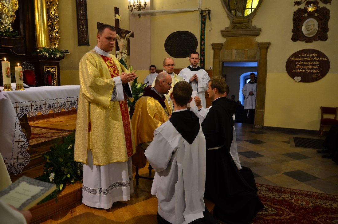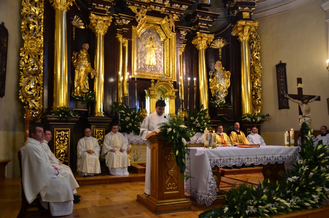 Msza św. o godz. 11:00 w sanktuarium św. Antoniego zgromadziła wielu gości. Przybyli bracia z Zakony, przybyły rodziny braci. Eucharystii przewodniczył o. Piotr Szczepański – on również przyjął śluby braci z prowincji warszawskiej. Natomiast słowo Boże skierował do nas o. Jan Maciejowski – prowincjał gdański. Na Jego ręce swoje śluby złożył br. Maciej. Ojciec Jan w homilii przybliżył nam rzeczywistość rad ewangelicznych. Neoprofesom życzył zaangażowania w życie zakonne. Życzenia złożył również Ojciec Wikariusz, który dziękował zwłaszcza rodzicom, za ich trud wychowania synów, a nadto zwrócił uwagę na ich ofiarę, jaką czynią oddając dziecko Panu Bogu. Po zakończonej Mszy św. wszyscy zaproszeni goście udali się do seminarium, gdzie przygotowany był dla nich poczęstunek.