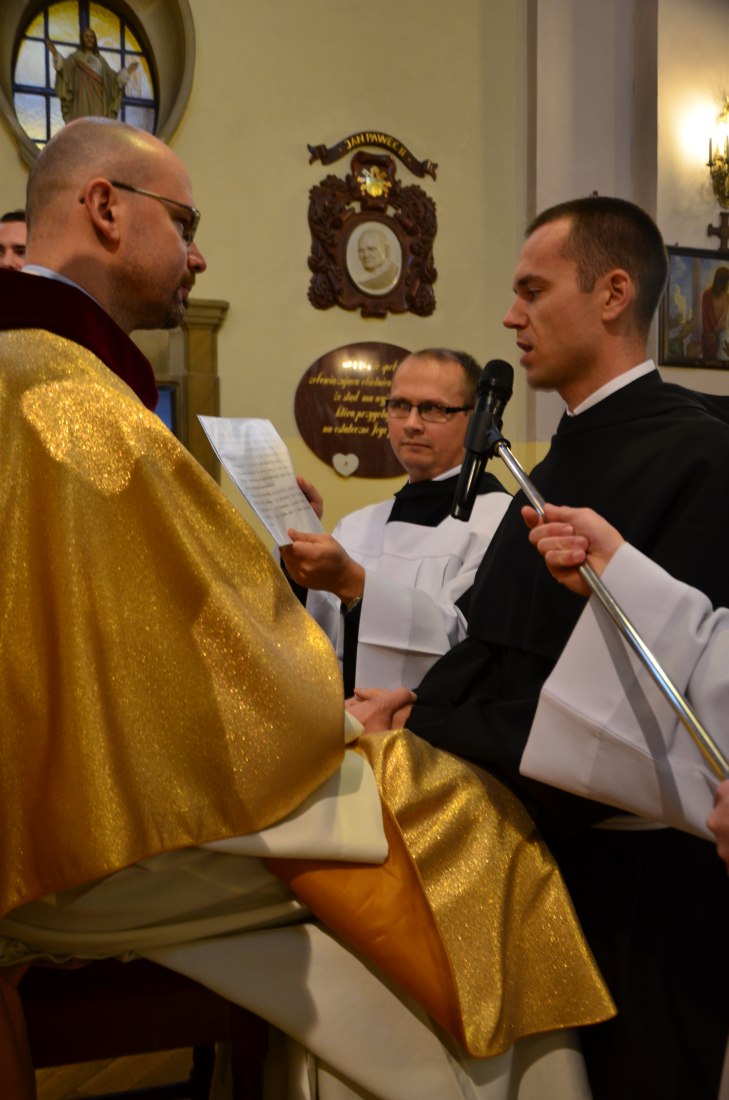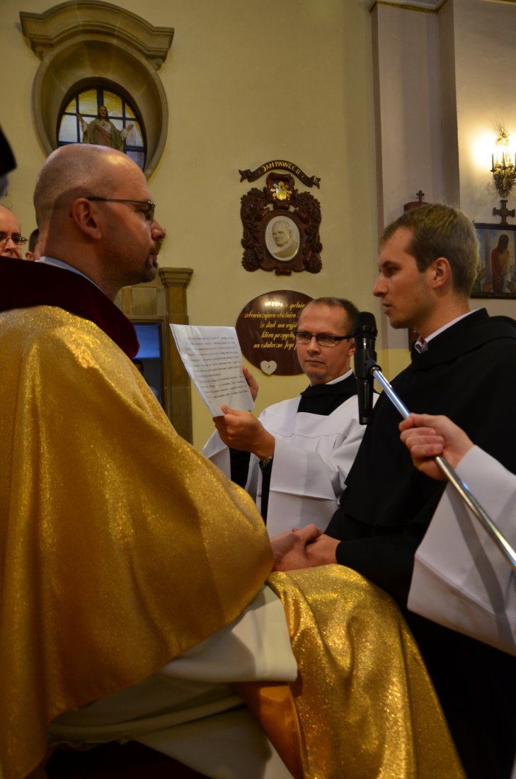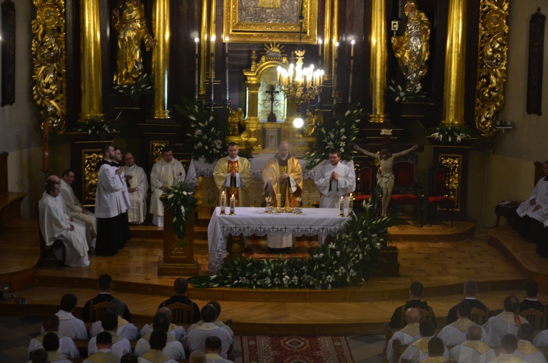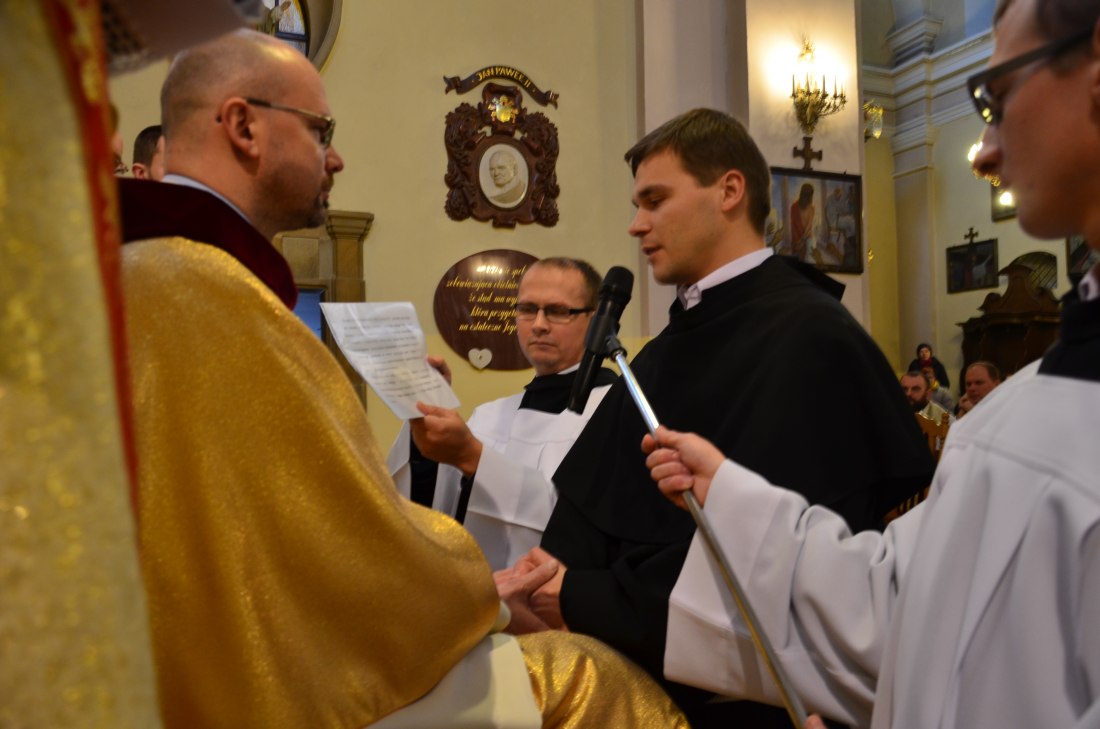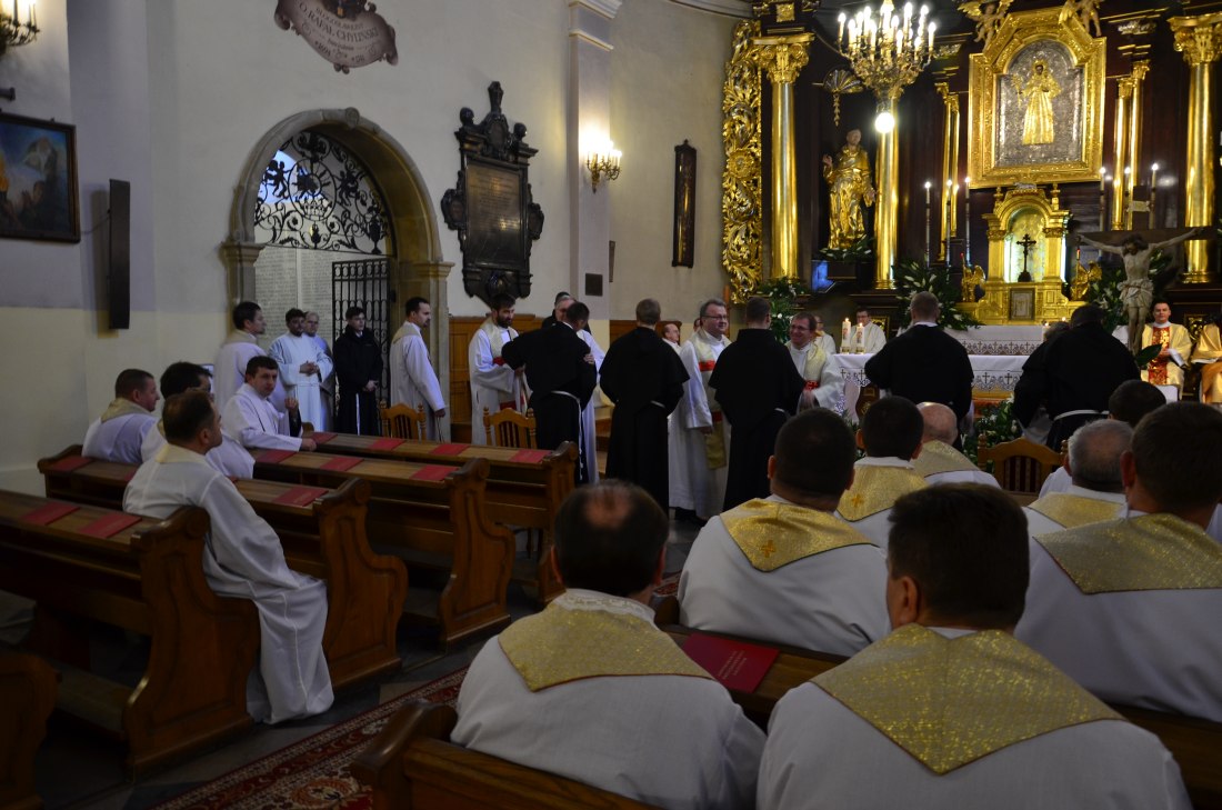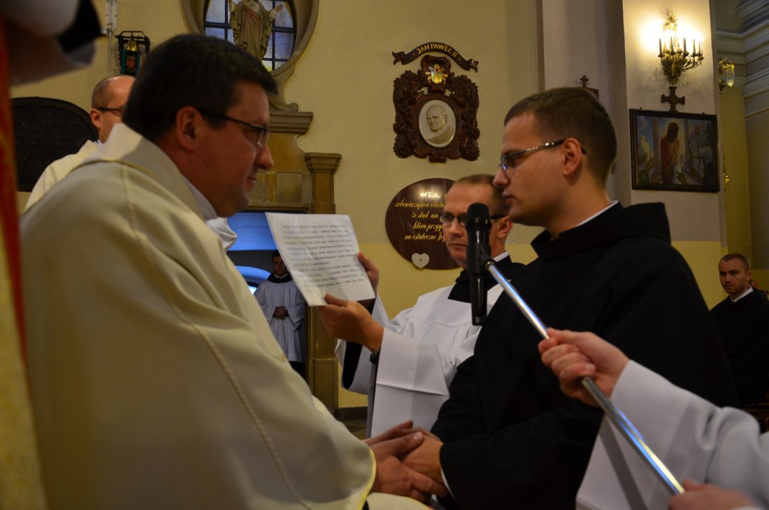 Msza św. o godz. 11:00 w sanktuarium św. Antoniego zgromadziła wielu gości. Przybyli bracia z Zakony, przybyły rodziny braci. Eucharystii przewodniczył o. Piotr Szczepański – on również przyjął śluby braci z prowincji warszawskiej. Natomiast słowo Boże skierował do nas o. Jan Maciejowski – prowincjał gdański. Na Jego ręce swoje śluby złożył br. Maciej. Ojciec Jan w homilii przybliżył nam rzeczywistość rad ewangelicznych. Neoprofesom życzył zaangażowania w życie zakonne. Życzenia złożył również Ojciec Wikariusz, który dziękował zwłaszcza rodzicom, za ich trud wychowania synów, a nadto zwrócił uwagę na ich ofiarę, jaką czynią oddając dziecko Panu Bogu. Po zakończonej Mszy św. wszyscy zaproszeni goście udali się do seminarium, gdzie przygotowany był dla nich poczęstunek.